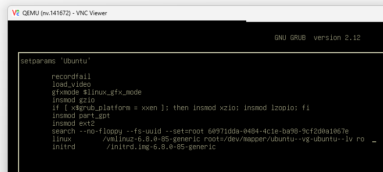 Сразу после этого вам нужно нажимать клавиши для того, чтобы попасть в меню GRUB. Клавиши зависят от версии GRUB, дистрибутива, и его настроек. Это может быть клавиша E, или shift, или кнопка вниз. Это проблемный момент, даже у опытных администраторов вы часто пролетаете за секунду этот момент, и начинает грузится ваша ОС. Тут нечего посоветовать, кроме терпения.