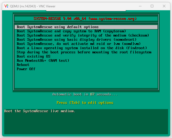Выбирайте загрузку с CD / DVD, загружайте SystemRescueCD: